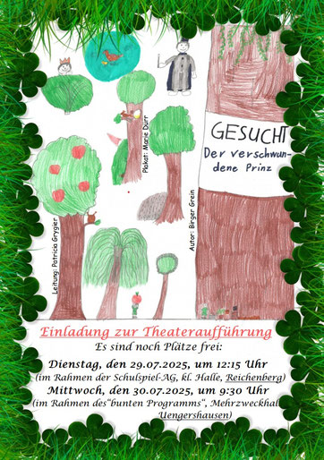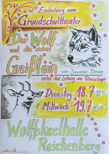 Ein großes Dankeschön – auch an dieser Stelle – noch einmal an Herrn Köck, der für die Schulspiel-AG das Plakat sowie Kulissen und Requisiten künstlerisch gestaltet hat!